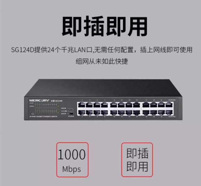 SG124D提供24个千兆LAN口,无需任何配置,插上网线即可使用